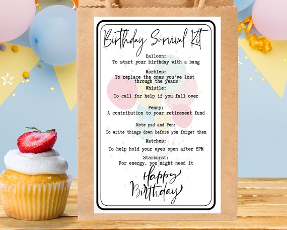 Birthday Survival Kit Birthday Gift Happy Birthday Printable Tags